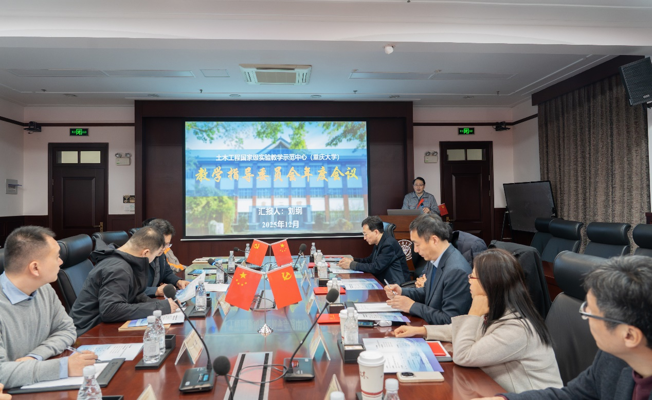 2025年12月20日,土木工程国家级实验教学示范中心(以下简称示范中心)教学指导委员会2024-2025年度会议在土木工程学院第一报告厅举行。示范中心教学指导委员会委员清华大学潘鹏教授、天津大学师燕超教授、广州大学马玉宏教授、同济大学马险峰教授、哈尔滨工业大学武岳教授、重庆大学杨庆山教授、重庆设计集团市政设计研究院杜春林教授级高级工程师,重庆大学土木工程学院领导班子成员、示范中心各实验室主管、专职实验员及教师代表参会。土木工程学院副院长肖杨主持会议。