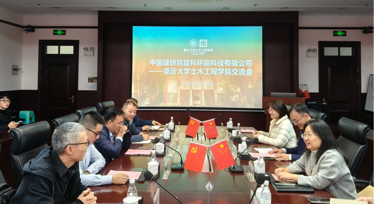 2025年10月26日上午,中国建研院建科环能科技有限公司党委书记、董事长孙峙峰一行访问重庆大学土木工程学院。双方围绕建筑节能、新能源应用等领域的技术创新与产学研合作进行了深入交流。会议由清洁能源所副所长肖益民主持。