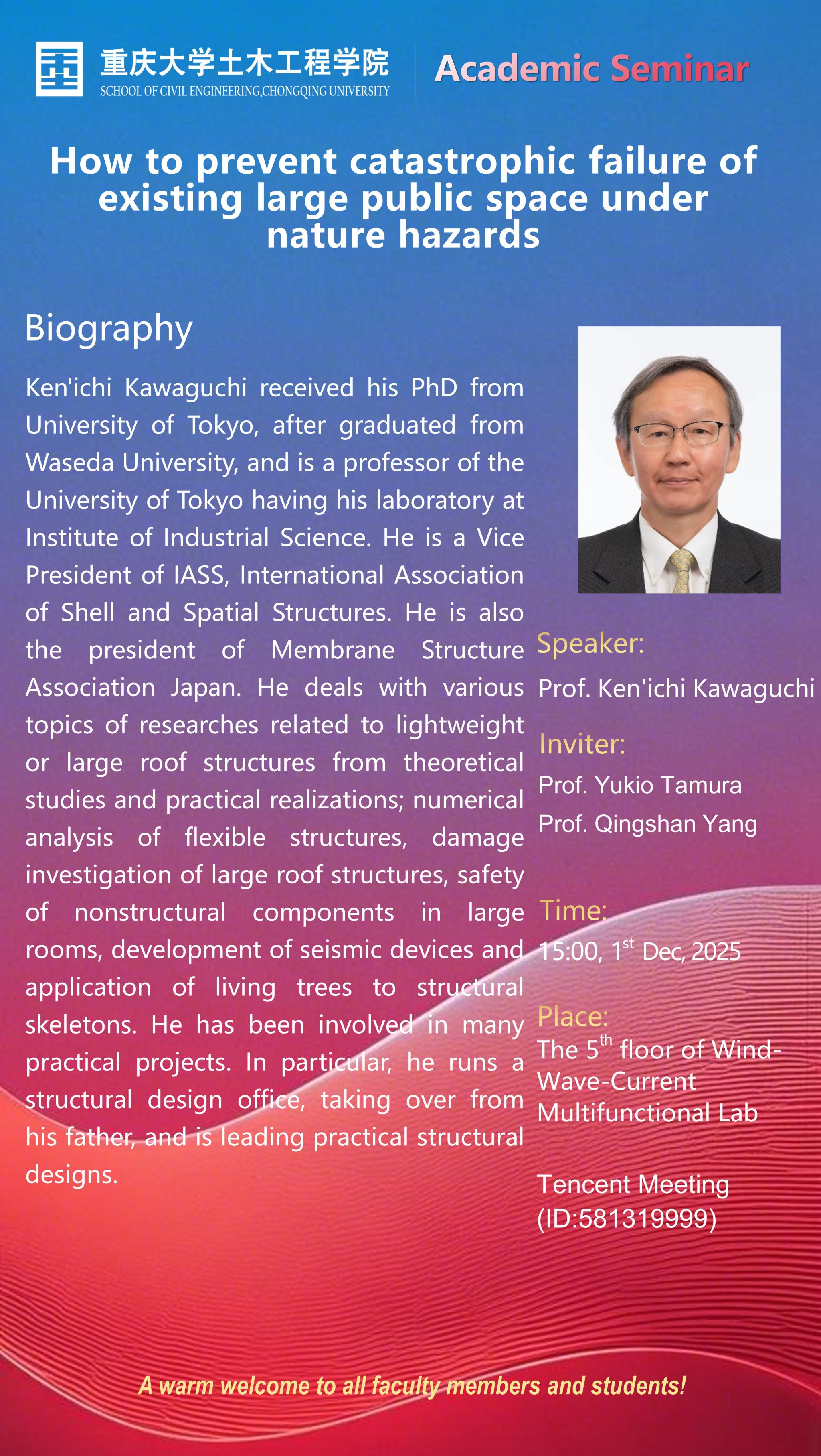 【学术报告】How to prevent catastrophic failure of existing large public space under nature hazards