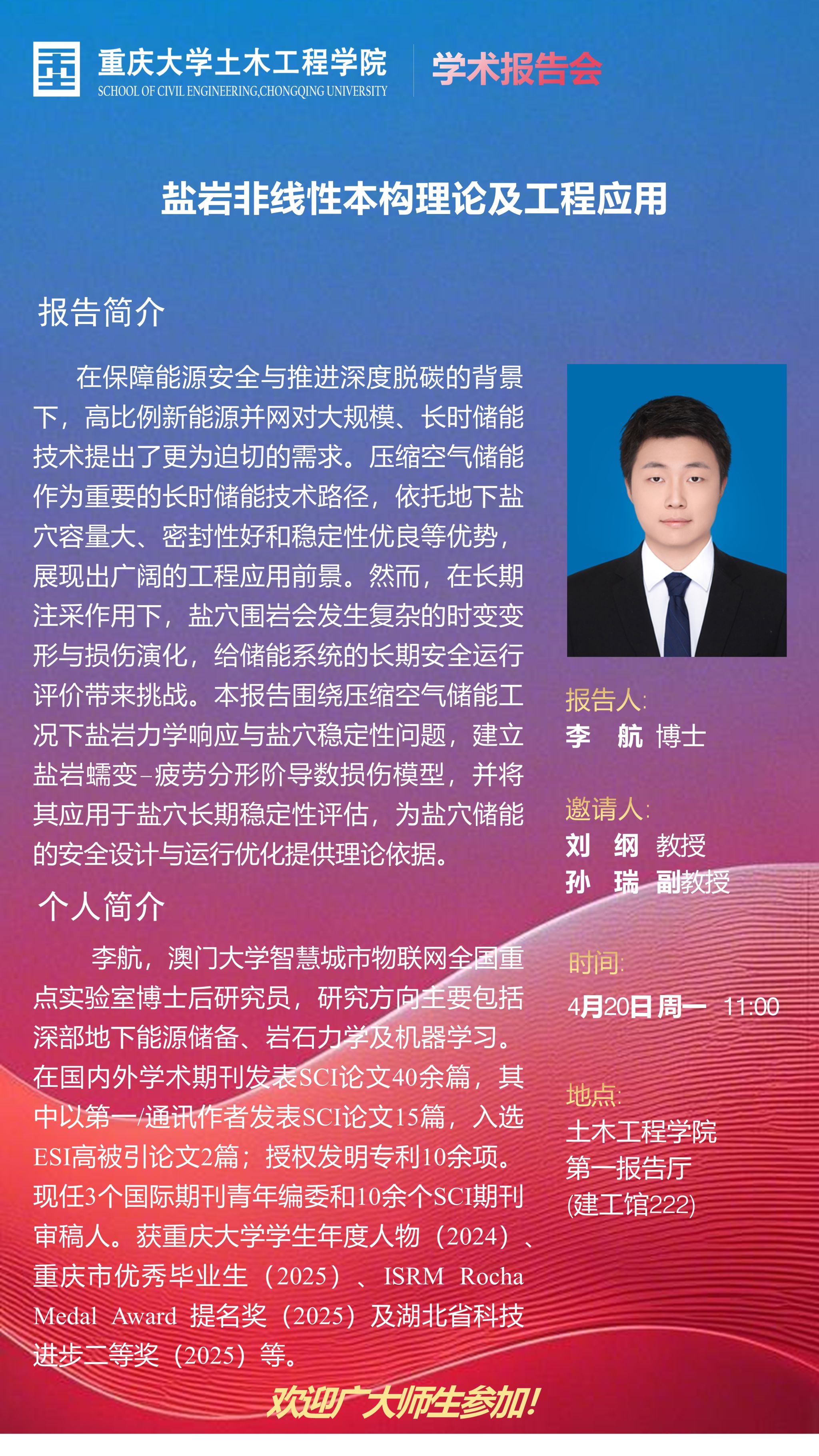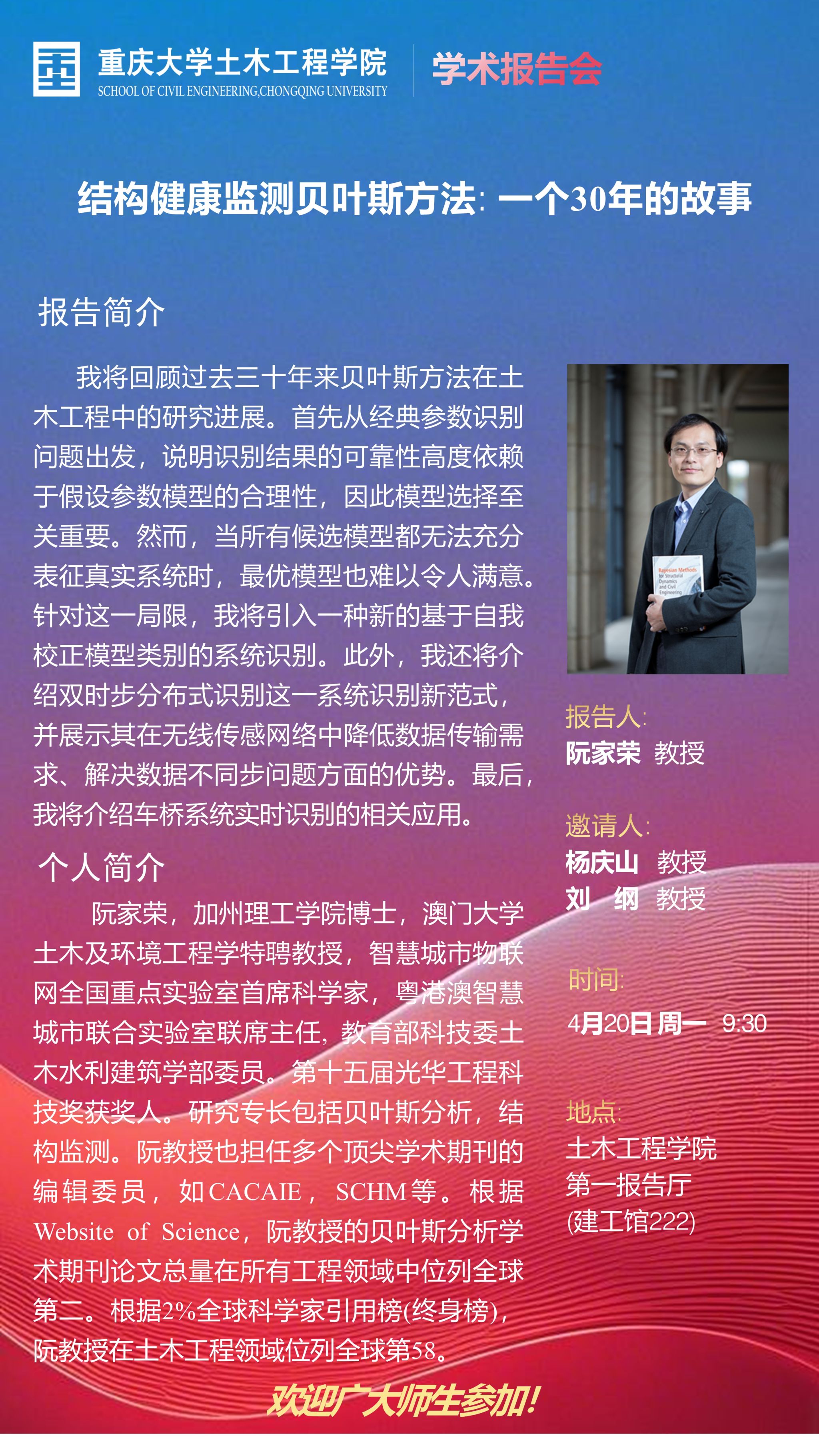 【学术报告】结构健康监测贝叶斯方法:一个30年的故事&盐岩非线性本构理论及工程应用