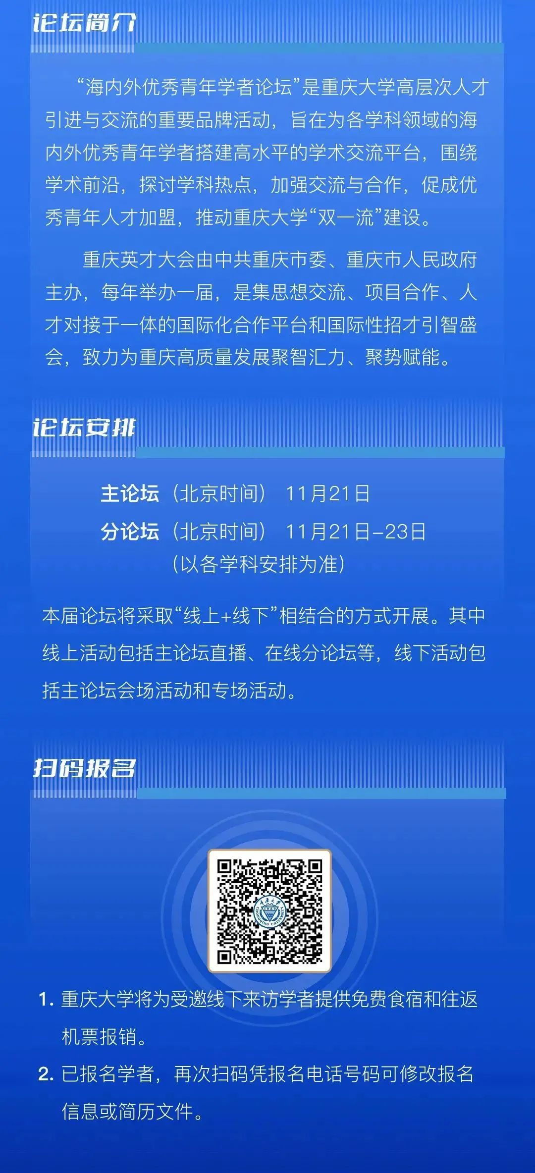 2021重庆大学海内外优秀青年学者秋季论坛欢迎您!