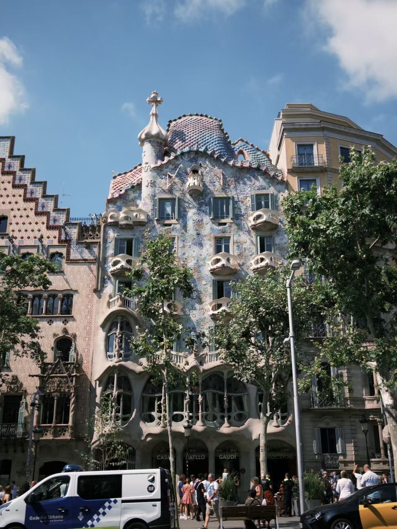 如果说学术课堂是理性的积淀,那么伊比利亚的风土人情则为这场旅程注入了感性的温度。在葡萄牙,罗卡角的悬崖边,卡蒙斯 “陆止于此、海始于斯” 的诗句与大西洋的涛声共鸣,让我读懂了这个海洋国家的开拓精神;波尔图老城区的石板路上,波特酒的醇香与波尔图音乐厅的现代线条交织,展现着传统与现代的和谐共生。而在西班牙,巴塞罗那的建筑奇观更让我震撼不已:圣家堂的尖顶刺破苍穹,彩色玻璃在阳光下投下的光影如同凝固的交响乐,高迪用自然主义的笔触诠释着建筑的神性;巴特罗之家的曲线立面与马赛克拼贴,将海洋生物的形态转化为建筑语言,诉说着加泰罗尼亚的艺术基因。此外,贝伦塔的防御工事见证着大航海时代的辉煌,加泰罗尼亚音乐宫的彩色雕塑彰显着民族艺术的活力,这些文化符号让我明白,建筑从来不是孤立的存在,而是地域文化与历史记忆的物质载体。