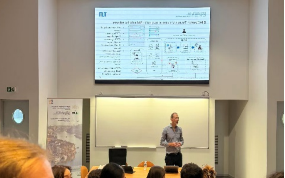 访学的核心内容围绕“建成环境的可持续未来”展开,波尔图大学的课堂无疑为这场学术探索奠定了坚实基础。在波尔图大学,通过欧洲建造工程计算委员会(EC³)的系列课程,我对建筑行业数字化转型有了更系统的理解。来自英国拉夫堡大学、以色列理工学院、波尔图大学等院校的专家学者,系统讲授了信息物理系统、建筑机器人、人工智能在AEC领域的应用、数字孪生、区块链等前沿课题。尤其是“数字孪生”与“生成式AI”课程,让我认识到数据驱动决策在建筑全生命周期管理中的巨大潜力。其中“区块链—数字产品护照”的产业对话,启发我思考如何通过技术手段实现建材溯源与碳足迹追踪,助力行业绿色转型。令我印象深刻的是,教授们并未停留于理论讲解,而是通过小组作业让我们沉浸式参与实践,这与重大的翻转课堂很是类似——我们围绕数字孪生技术为波尔图老城区的保护与更新构建模拟模型,在反复调试中理解技术与历史建筑的适配性;也探讨生成式 AI 在建筑设计中的伦理边界,在思维碰撞中明晰技术工具的价值尺度。这些课程打破了我对土木工程 “重施工、轻创新” 的固有认知,让我看到人工智能、机器人技术等前沿科技正在为建筑行业注入的无限可能。