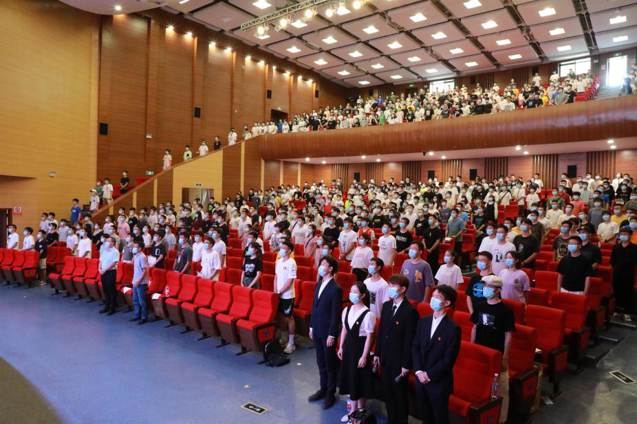 天气虽然炎热,但学员们的学习热情却异常高涨。根据防疫要求,全体学员在仪式开始前佩戴口罩,间隔就坐。会议伊始,全体学员起立,齐声合唱共青团团歌。青年学员的歌声涤荡科学会堂,拼搏向上、勇往直前的共青团精神也流淌在歌声中。
